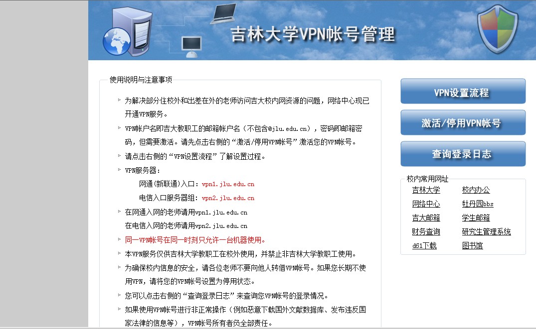 近几个月以来,吉大网络面向全体教职工进行了虚拟专用网络(VPN)测试,解决了在校外居住和出差在外移动办公的教师需要访问校内网络资源的问题;向每位吉大学生发放了吉大邮箱帐户的使用权限。大家在课堂内外高度评价了这些方便师生的举措,吉大BBS牡丹园站的站友们也对此进行了热烈讨论。